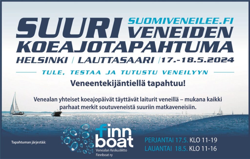 Suuri suomiveneilee.fi veneiden koeajotapahtuma starttaa veneilykesän Helsingissä. Silacraft on mukana näillä venealan toimijoiden yhteisillä koeajopäivillä. Koeajot pyörivät non-stop -periaatteella perjantaina klo 11-19 ja lauantaina klo 11-16 ja koejaoille lähdöt toteutetaan aina puolen tunnin välein. Ja mikä parasta, koko tapahtuma on yleisölle maksuton!
